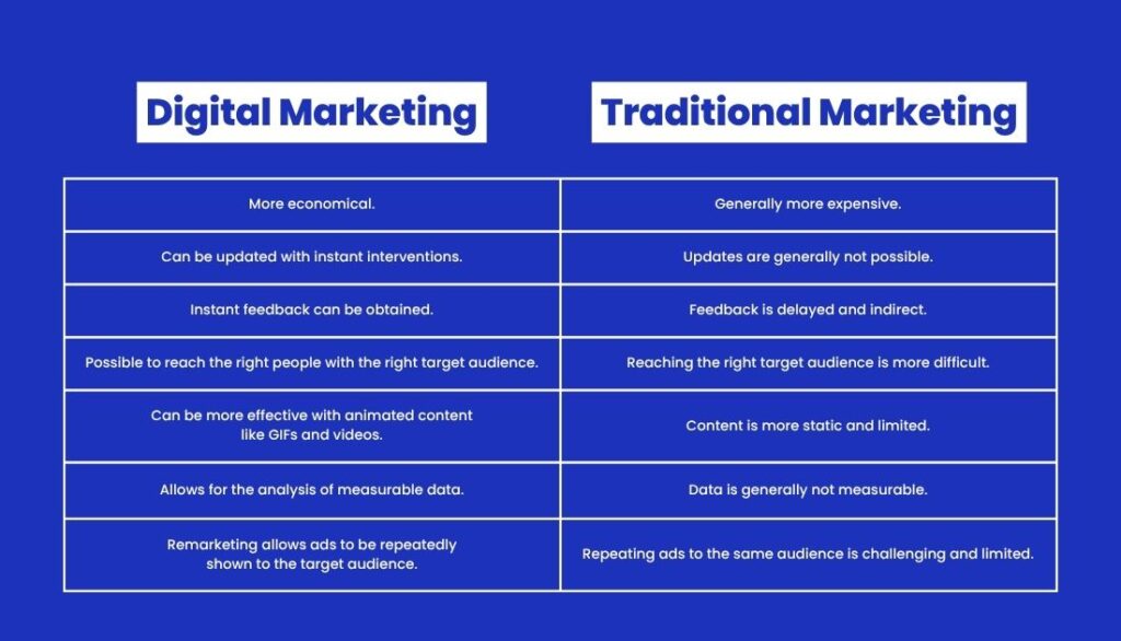Digital marketing is interactive and personalized. It lets brands respond to customers, collect feedback, and build long-term relationships.